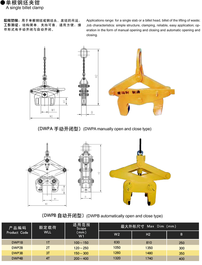 Metallurgical Spreader Industry> A single Billet clamp