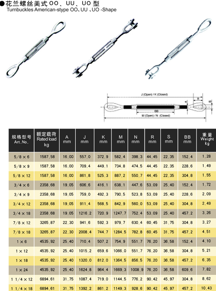 Rigging Fittings Industry> Turnbuckles American-stype OO¡¢UU¡¢UO-shape